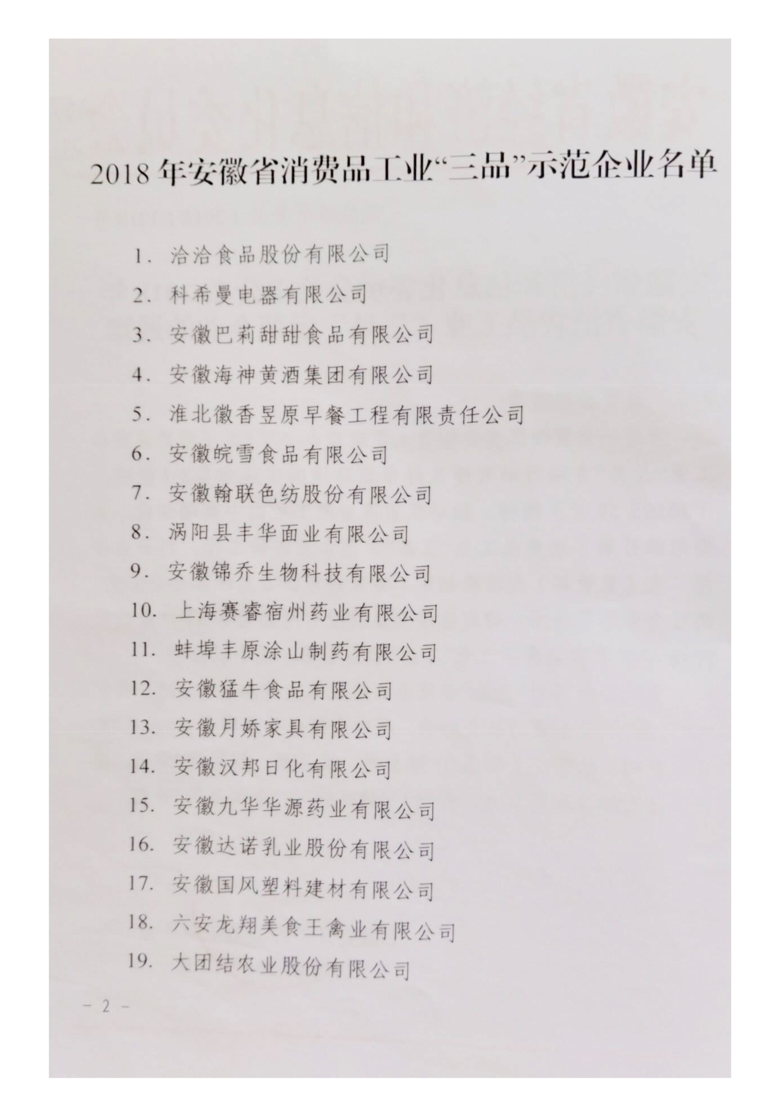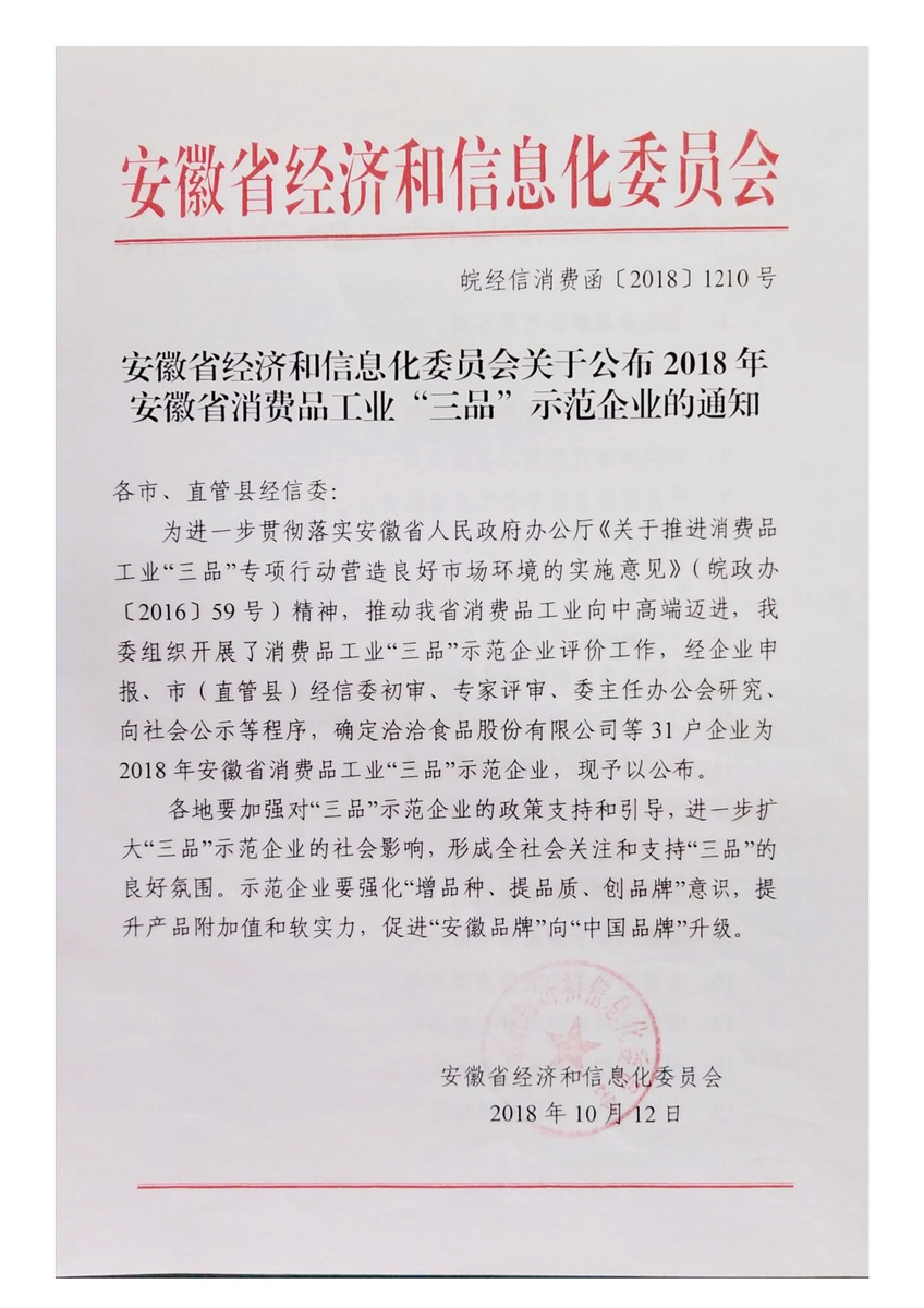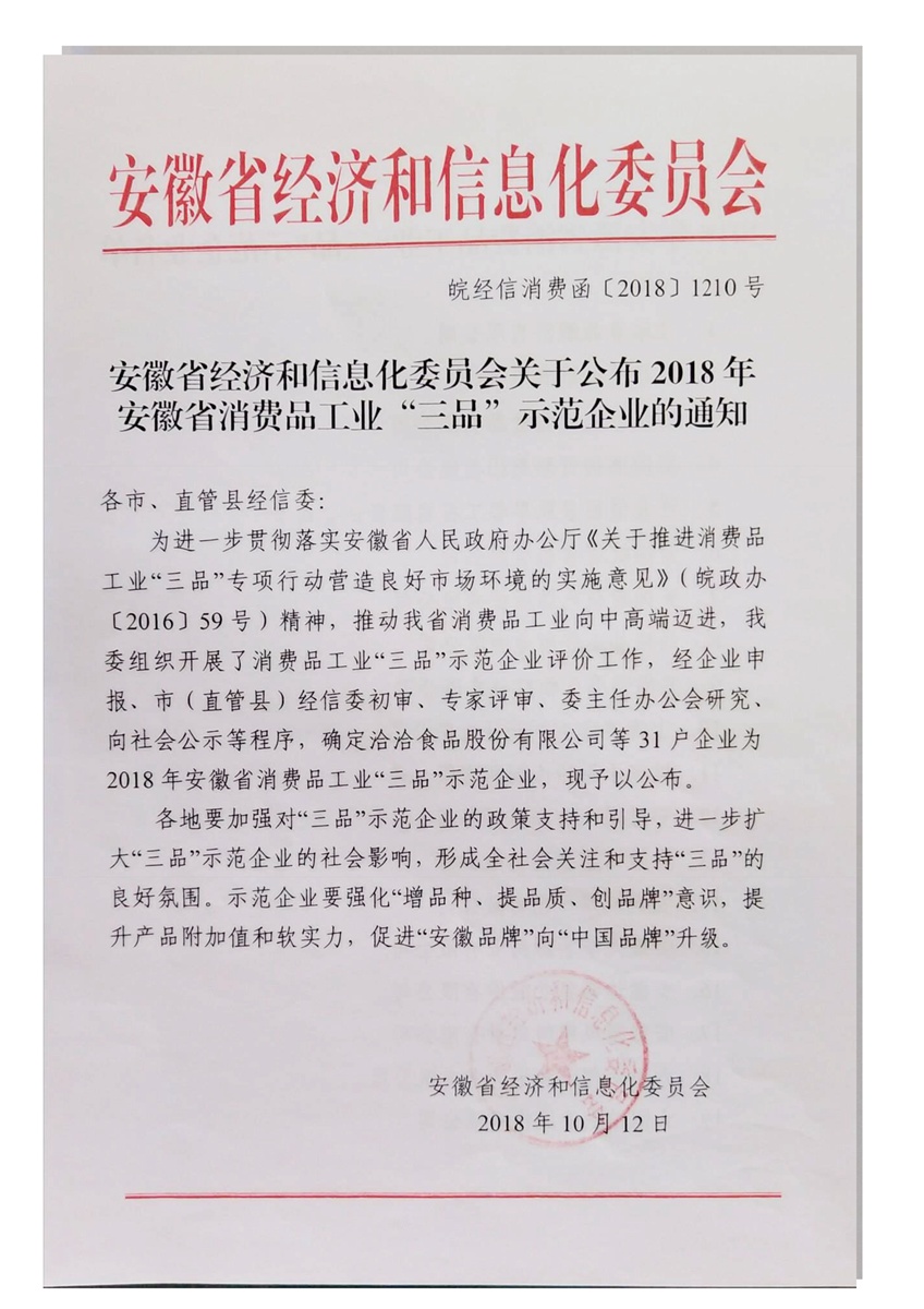 2018年度安徽省工業(yè)三品示范企業(yè)通知